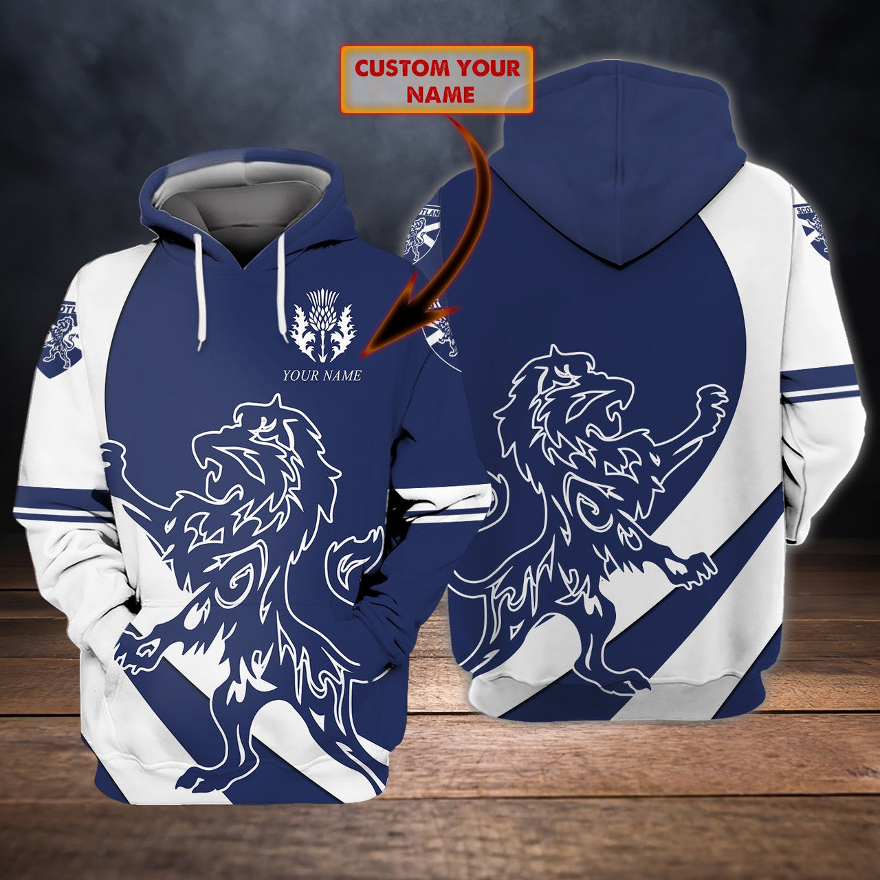 FUNSTUFFPRINT Personalized Name Scotland Royal Lion and Thistle Pullover- 3D Hoodie and Zip Hoodie