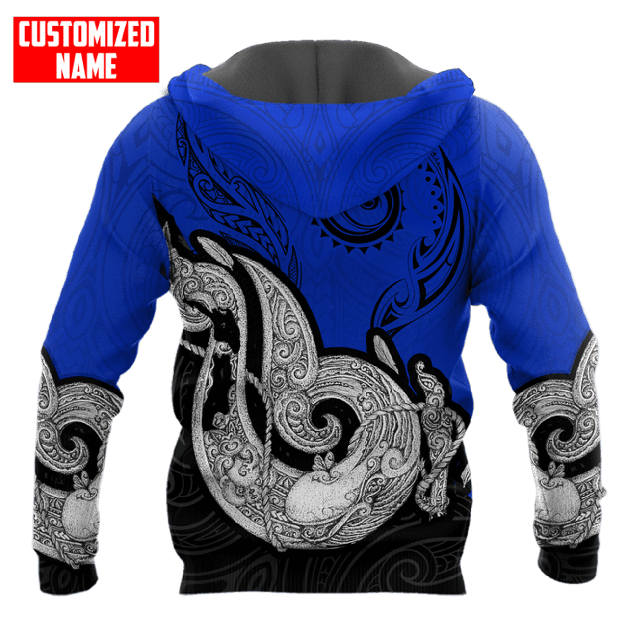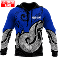 FUNSTUFFPRINT Personalized New Zealand Aotearoa Fish Hook Blue 3D Hoodie and Zip Hoodie