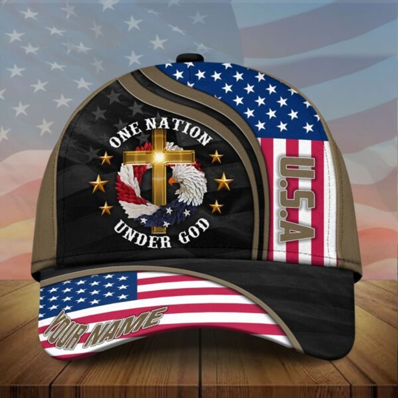 FUNSTUFFPRINT Personalized Premium Eagle Usa Baseball Cap One Nation Under God 3D Printed Classic Hat Multicolor