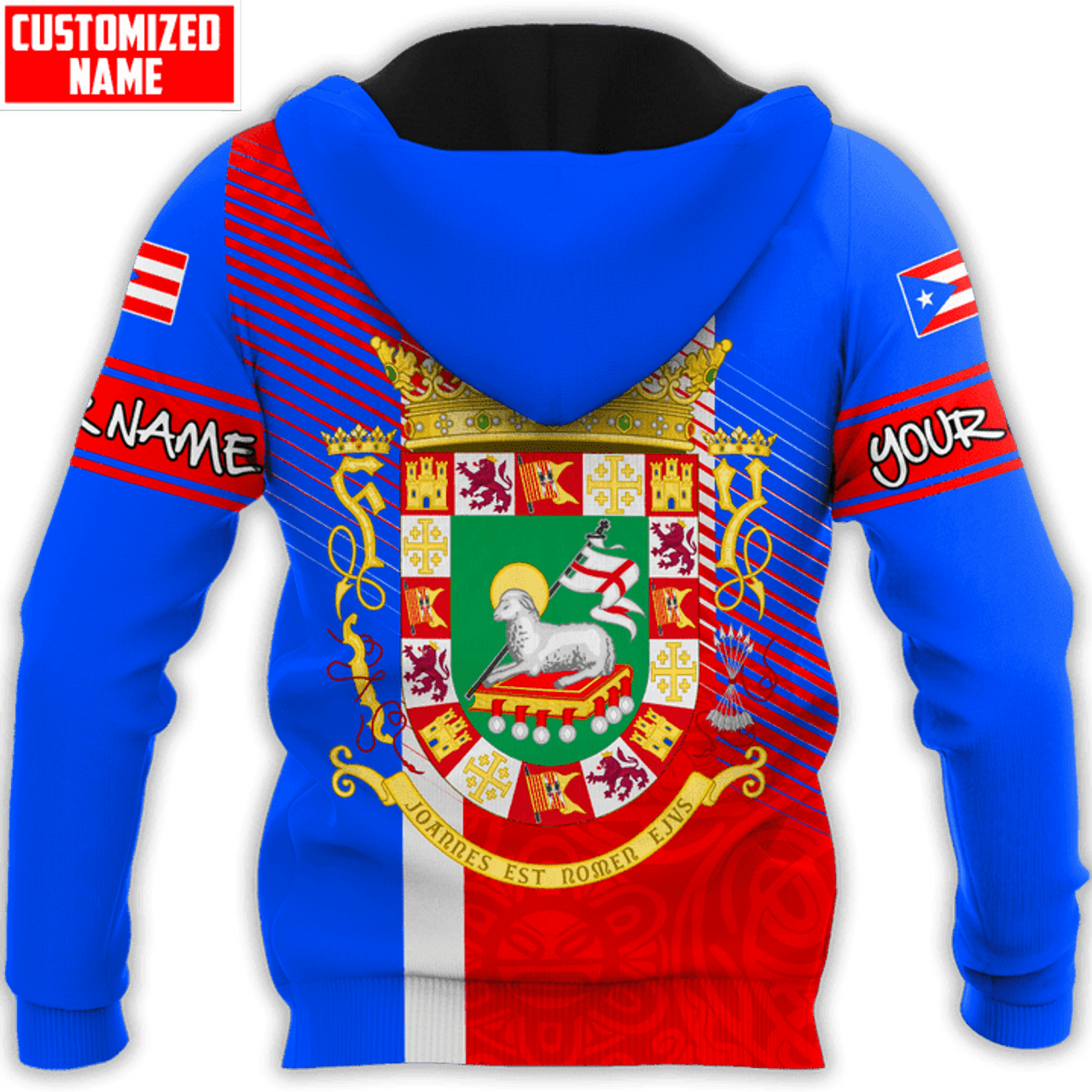 FUNSTUFFPRINT Personalized Puerto Rico Boricua Coat Of Arms Unisex 3D Hoodie and Zip Hoodie