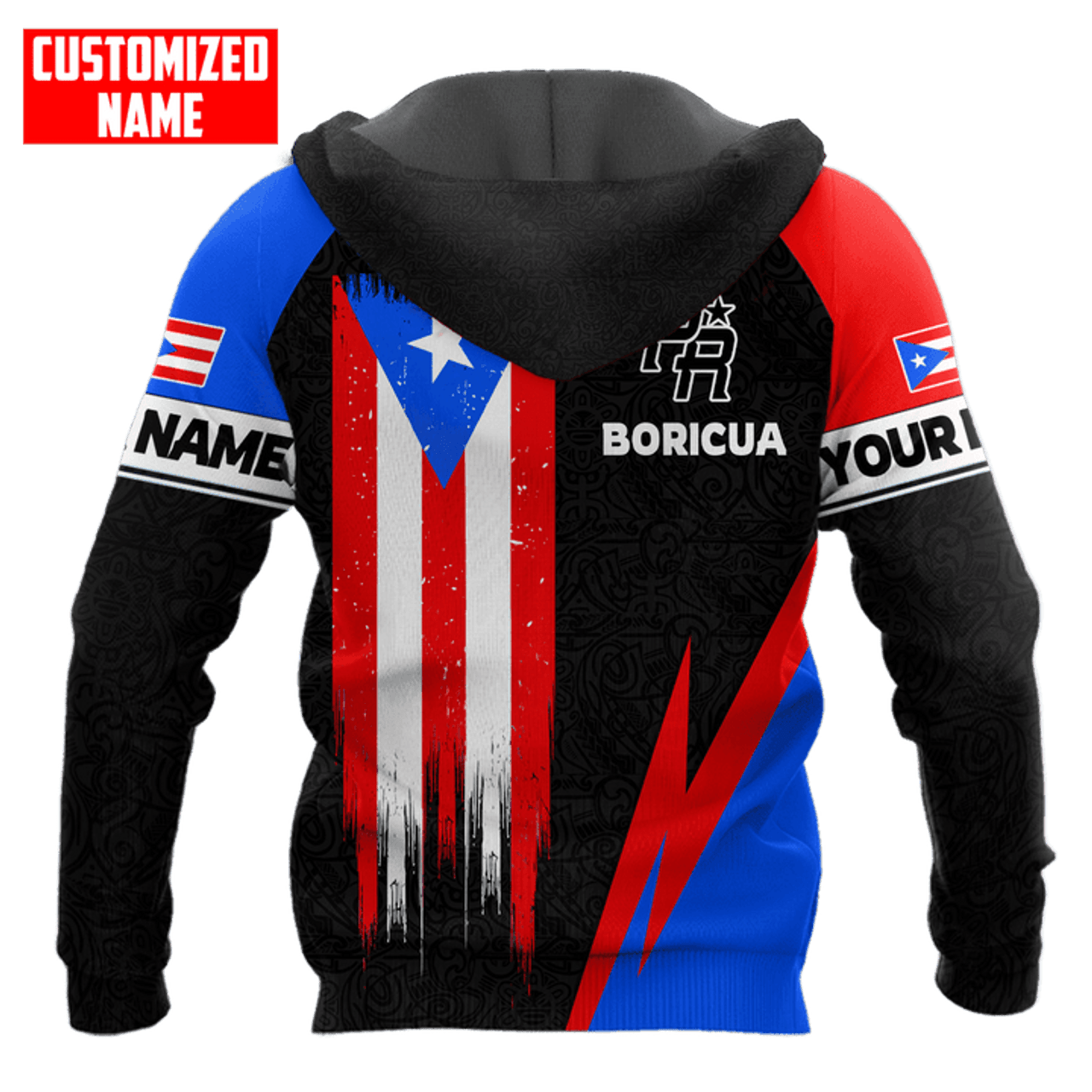 FUNSTUFFPRINT Personalized Puerto Rico Flag Distressed Boricua Unisex 3D Hoodie and Zip Hoodie