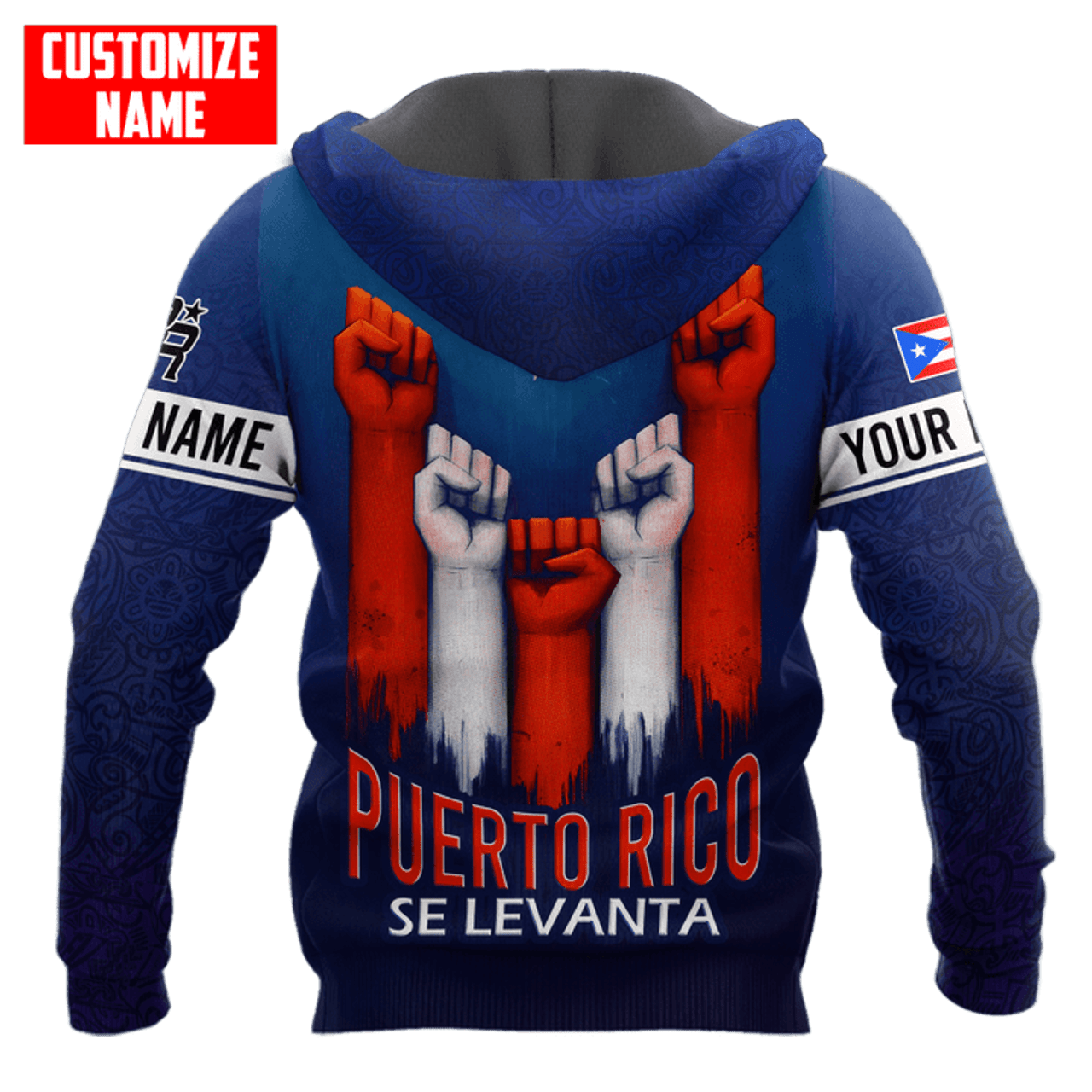 FUNSTUFFPRINT Personalized Puerto Rico Se Levanta Hand Flag Unisex 3D Hoodie and Zip Hoodie