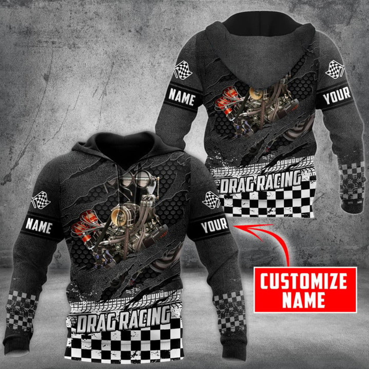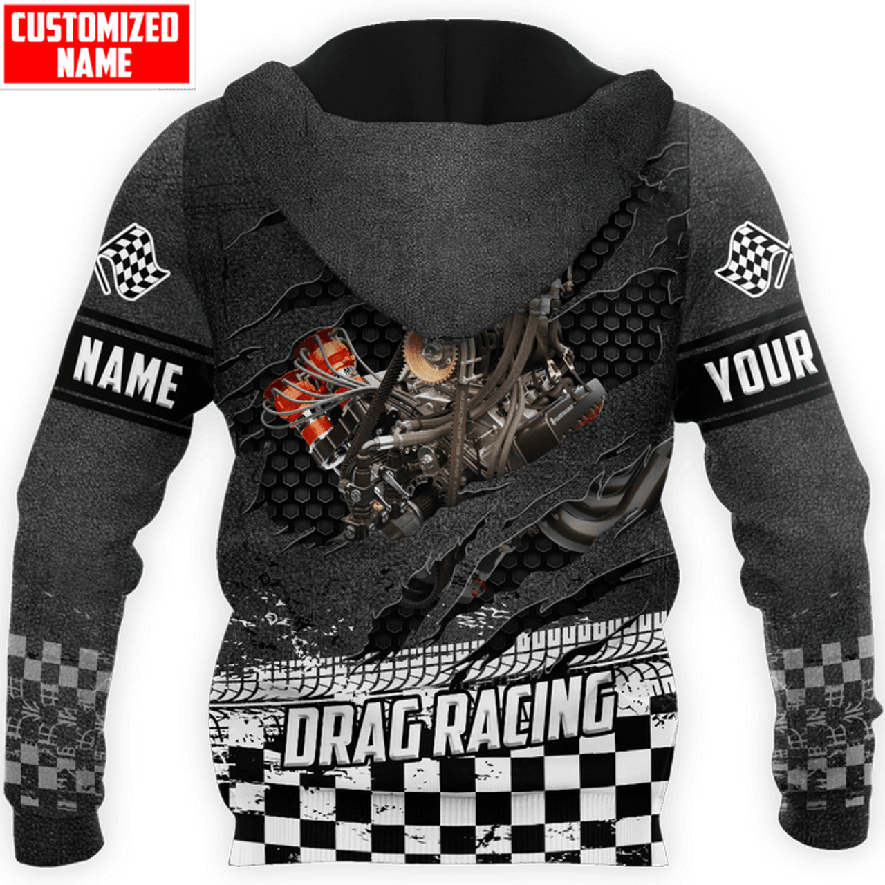FUNSTUFFPRINT Personalized Racing Crack Drag Racing Engine 3D Hoodie and Zip Hoodie
