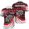 FUNSTUFFPRINT Personalized Red Darts Board Plaid Pattern Men Darts Polo Shirts Custom Darts Team Polo Shirt Size S-5XL