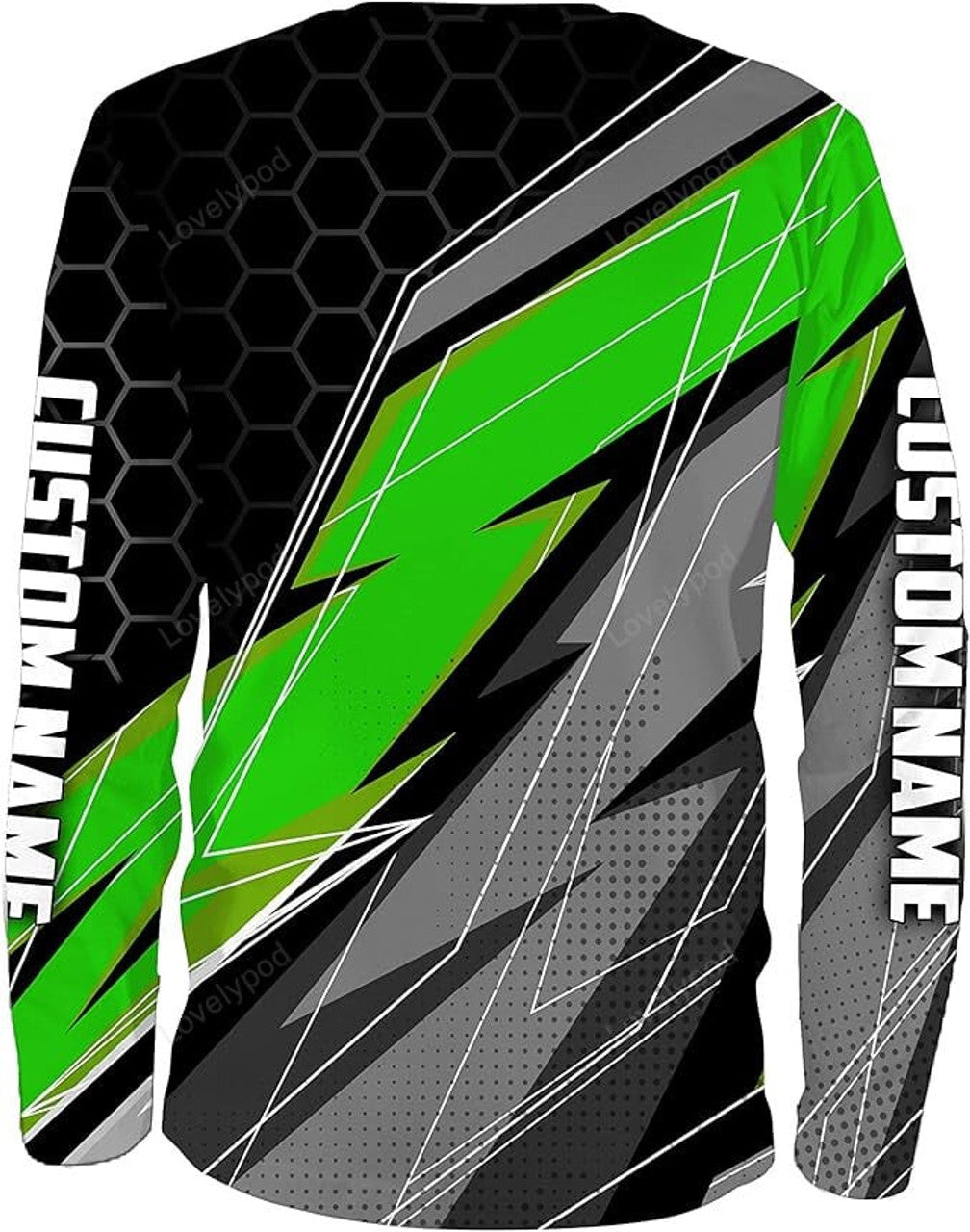 FUNSTUFFPRINT Personalized Riding Jersey, Motocross Racing Shirt, Dirt Bike Motorcycle Long Sleeves for Off-Road Biker - Green 3D Long Sleeve T-Shirt