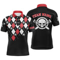 FUNSTUFFPRINT Personalized Skull Argyle Pattern Mens Disc Golf Polo Shirt Custom Disc Golf Team Shirts For Men Polo Shirt Size S-5XL