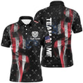 FUNSTUFFPRINT Personalized Smoke US Flag Dart Polo Shirts, Custom Patriotic Darts Shirts For Men Dart Jerseys Polo Shirt Size S-5XL