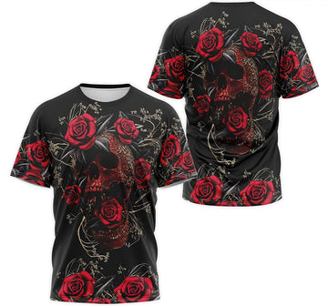 FUNSTUFFPRINT Personalized T-Shirt, Hoodie - Skull Rose Flower Pattern 3D T-shirt