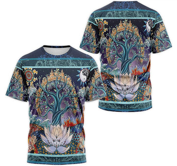 FUNSTUFFPRINT Personalized T-Shirt, Hoodie - Tree Sun Lunisolar Hand Lotus Flower Mandala Painting 3D T-shirt