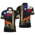FUNSTUFFPRINT Personalized Texas Flag Flaming 8 Ball Pool Men Polo Shirts, Patriotic Billiard Attire Jerseys