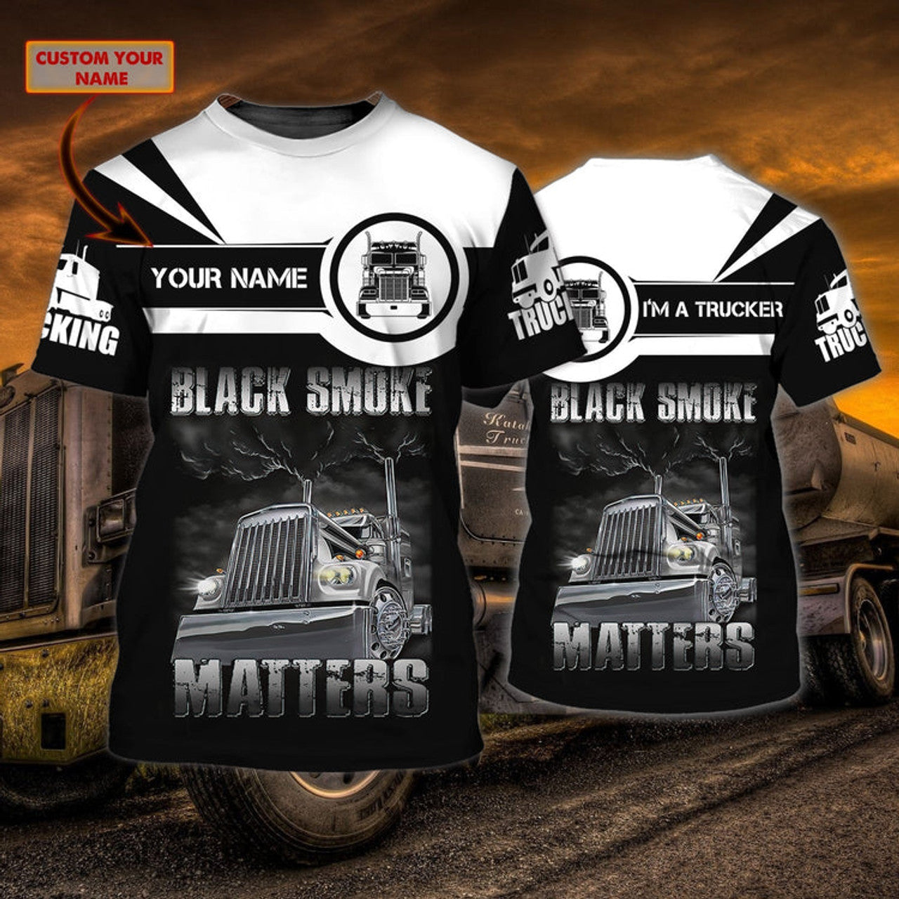 FUNSTUFFPRINT Personalized Truck Driver T-Shirt Black Smoke Matters Gift For Trucker 3D T-shirt