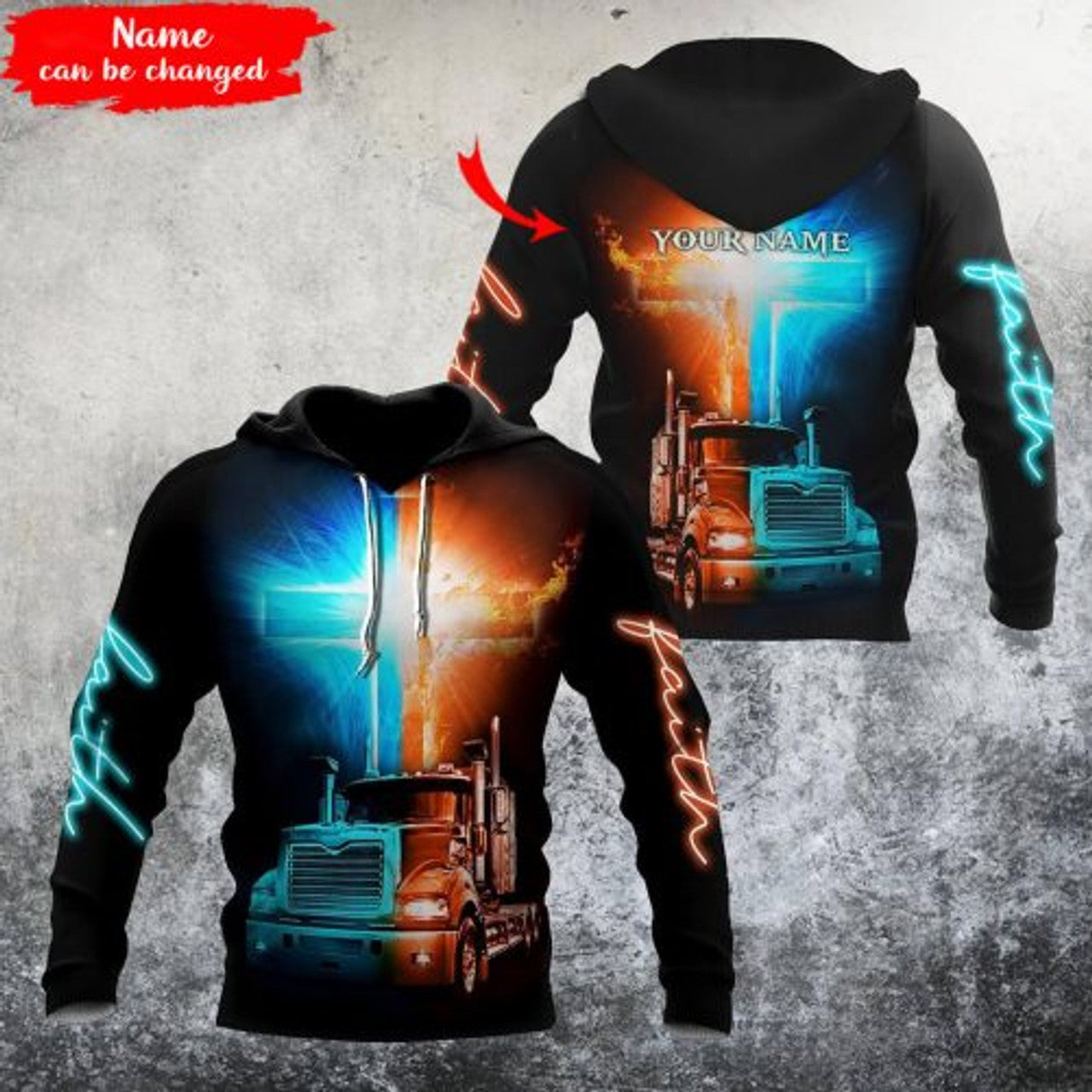 FUNSTUFFPRINT Personalized Trucker 3D Hoodie Faith Black 3D Hoodie and Zip Hoodie