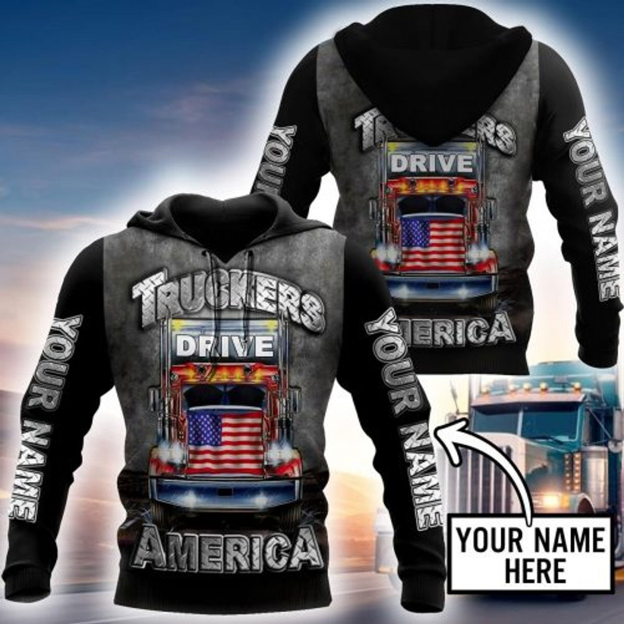 FUNSTUFFPRINT Personalized Trucker 3D Hoodie Truckers Drive America 3D Hoodie and Zip Hoodie