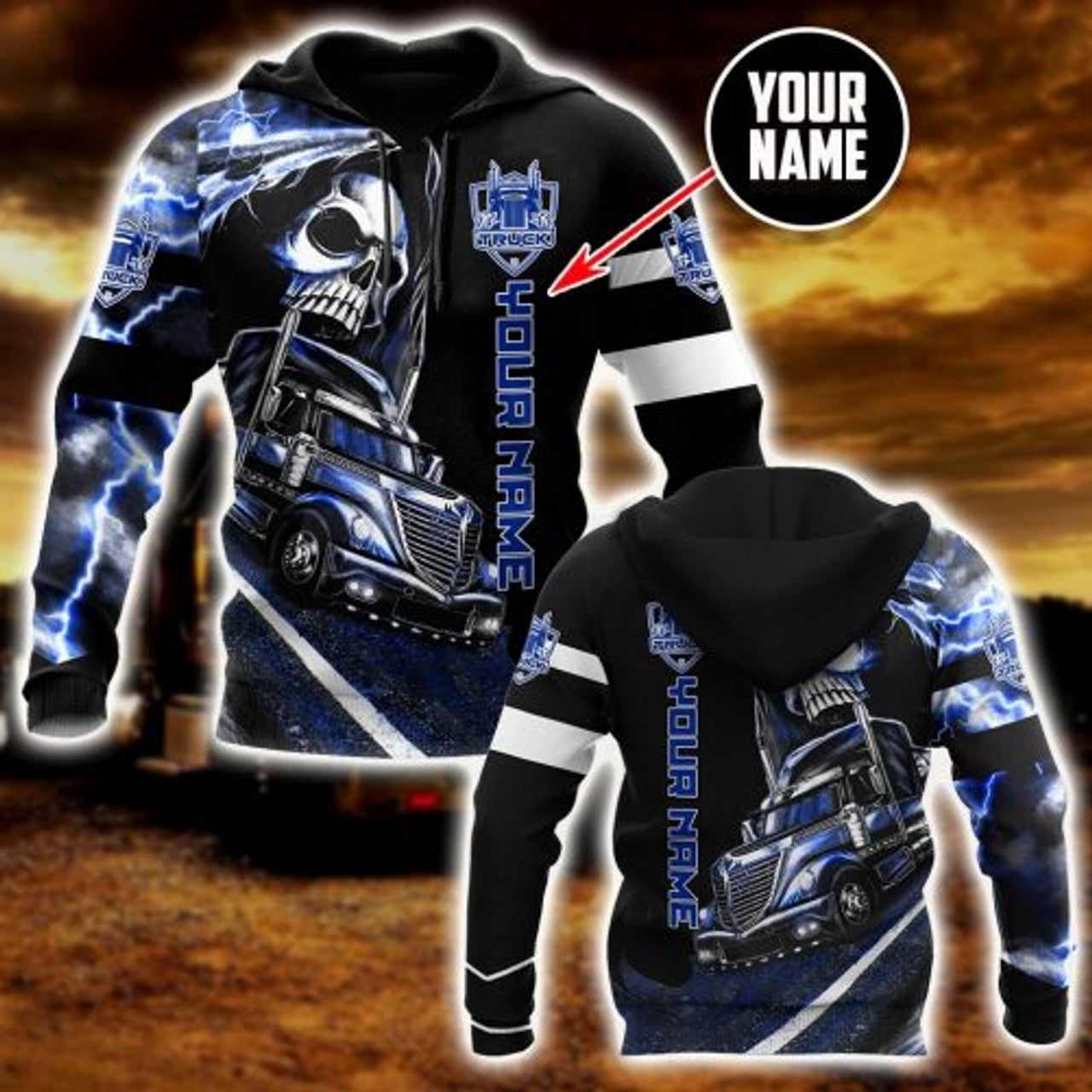 FUNSTUFFPRINT Personalized Trucker Skull 3D Hoodie and Zip Hoodie