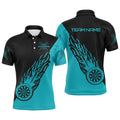 FUNSTUFFPRINT Personalized Turquoise & Black Flame Darts Men Polo Shirt Darts Shirt For Men Dart Polo Shirt Size S-5XL