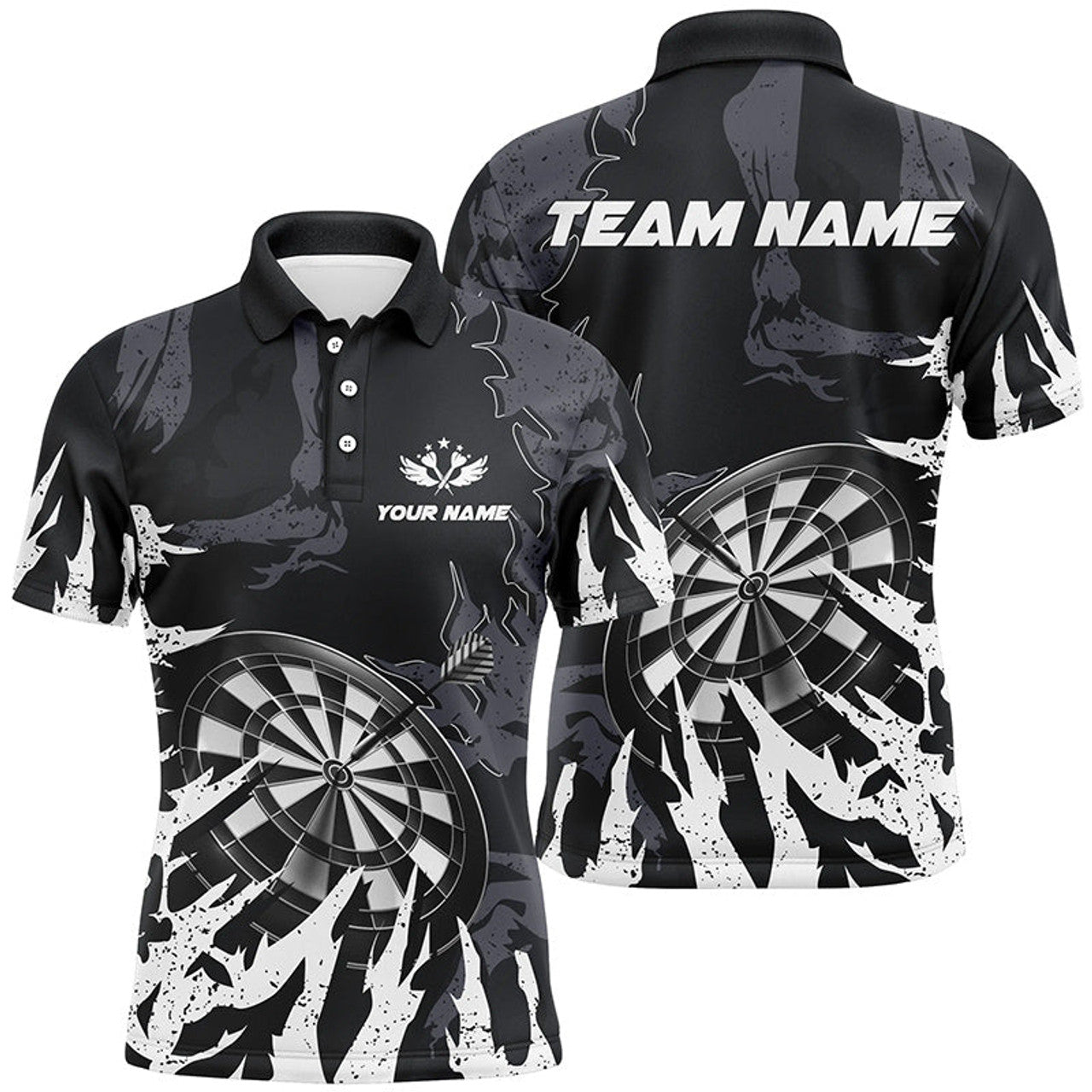 FUNSTUFFPRINT Personalzied Darts Board White Grunge Style Polo Shirt Size S-5XL