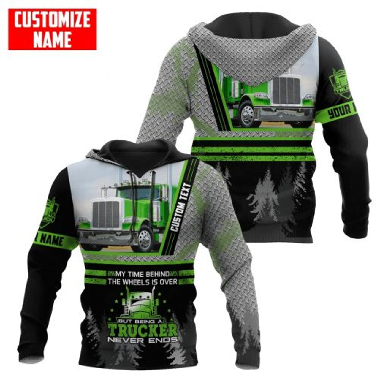 FUNSTUFFPRINT Pesonalized Trucker 3D Hoodie My Time Behind The Wheels Is Over 3D Hoodie and Zip Hoodie