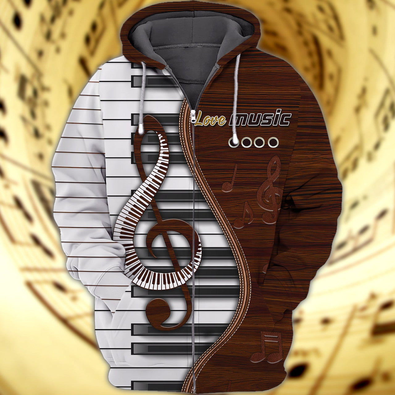 FUNSTUFFPRINT Piano, 3D Full Print 3D Hoodie and Zip Hoodie