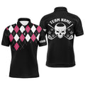 FUNSTUFFPRINT Pink Argyle Pattern Mens Golf Polo Shirts, Customized Skull Golf Shirts For Men Polo Shirt Size S-5XL