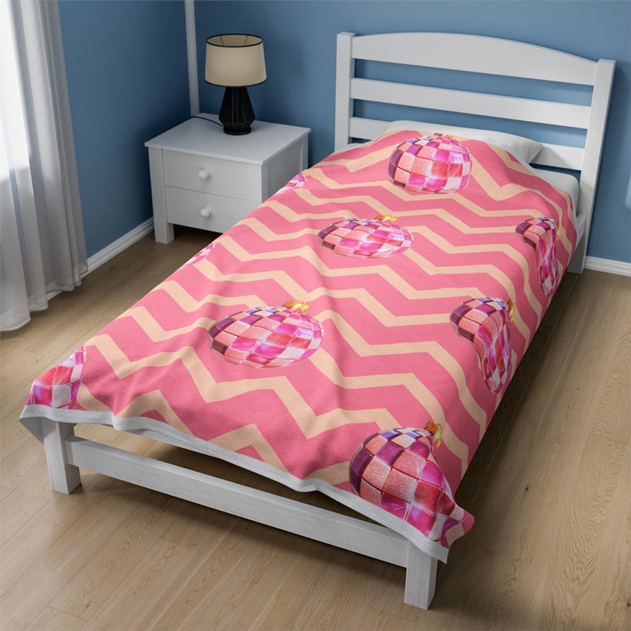 FUNSTUFFPRINT Pink Chevron Disco Ball Christmas Velveteen Plush Blanket