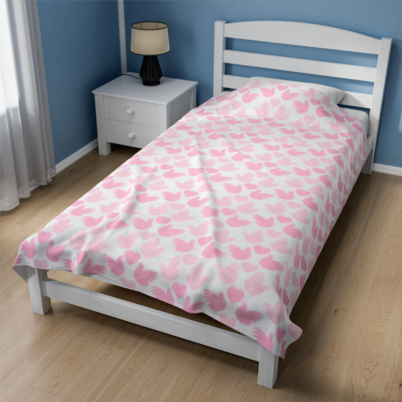 FUNSTUFFPRINT Pink Love Birds Valentine Plush Blanket