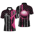 FUNSTUFFPRINT Pink Ribbons Cancer Awareness Mens Golf Polo Shirts, Custom Patriotic US Flag Golf Gifts Polo Shirt Size S-5XL