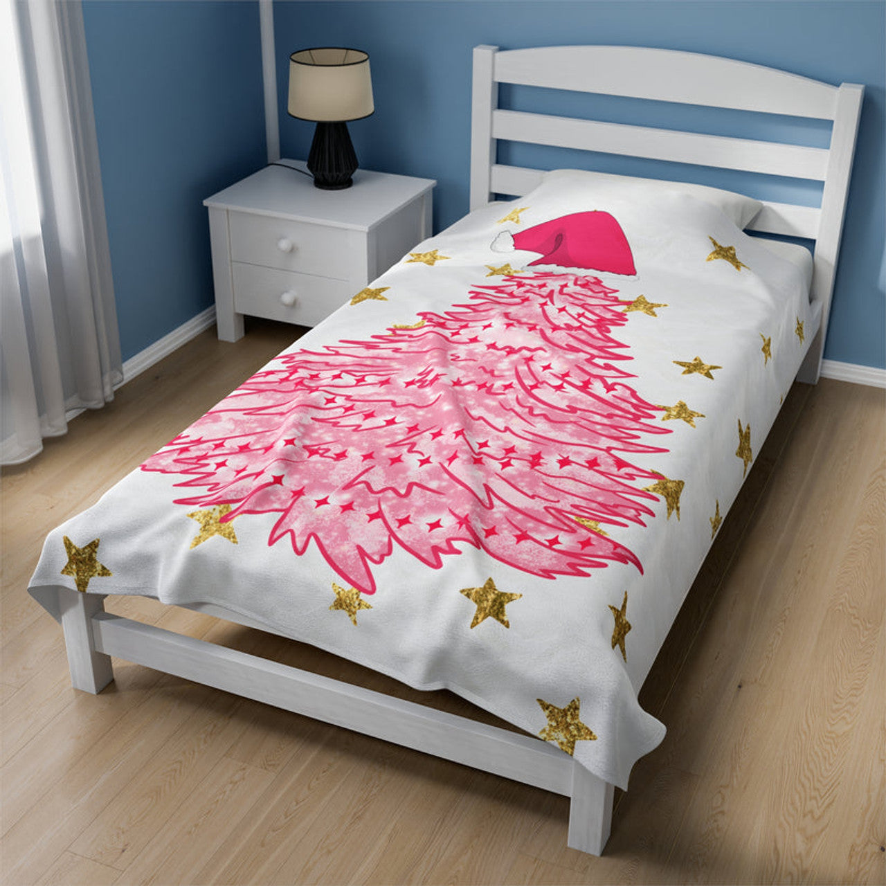 FUNSTUFFPRINT Pink Tree Velveteen Plush Blanket