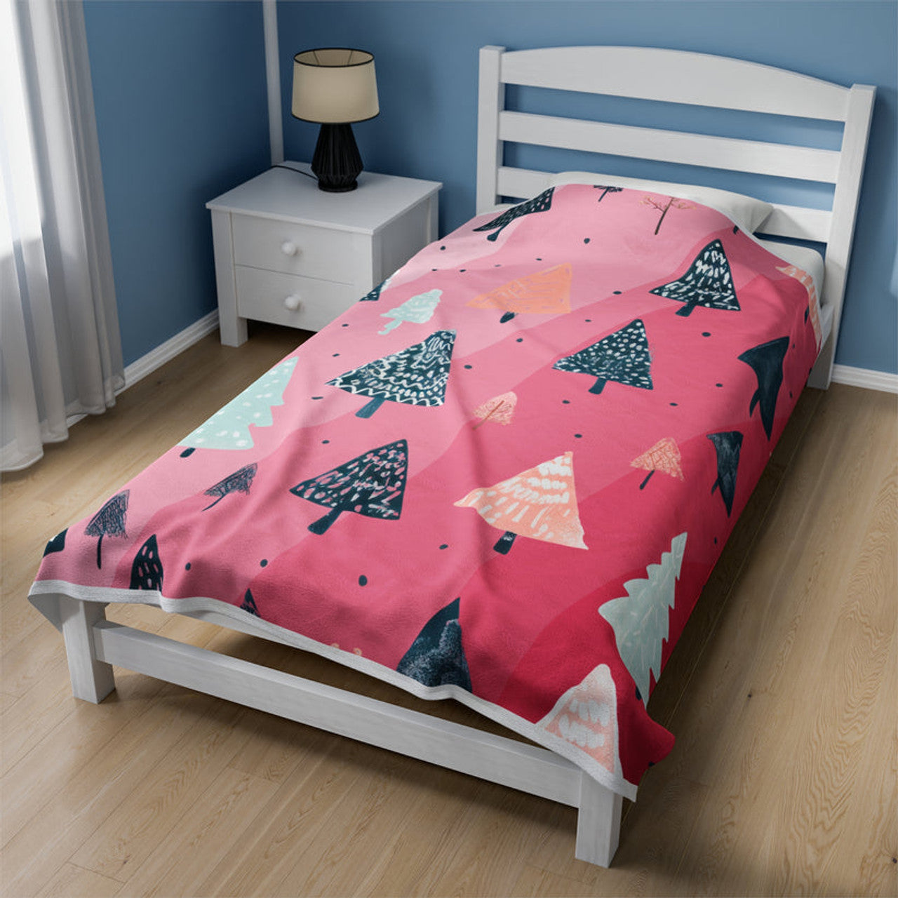FUNSTUFFPRINT Pink Trees Velveteen Plush Blanket