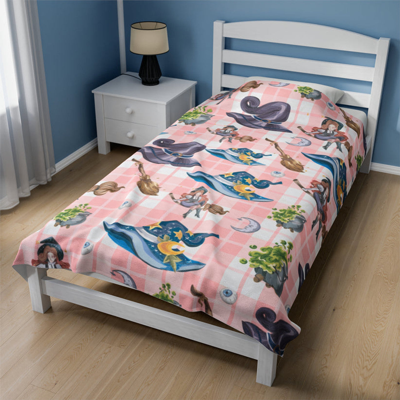 FUNSTUFFPRINT Pink Witch Velveteen Plush Blanket