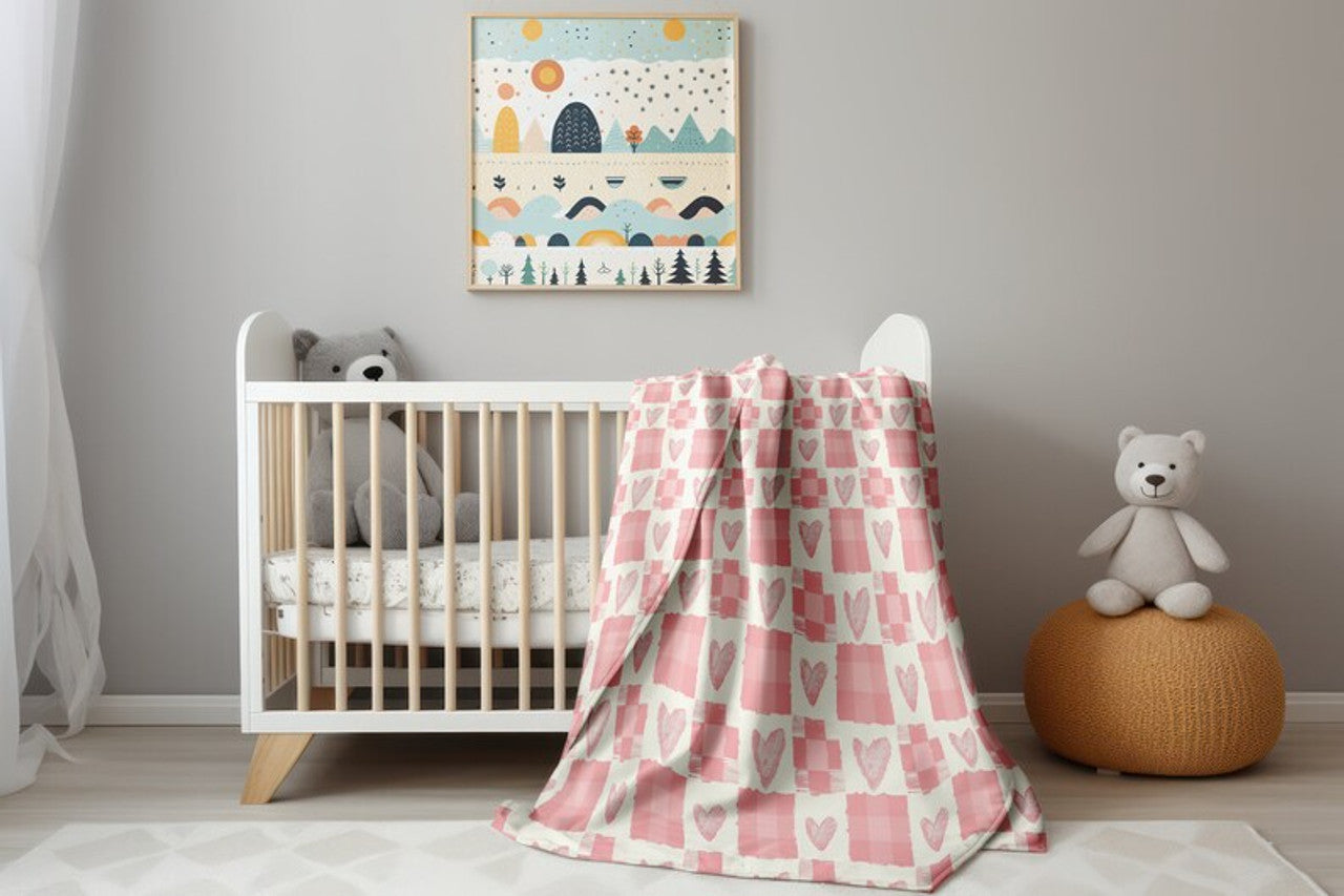 FUNSTUFFPRINT Plaid Hearts Baby Swaddle, Girl Swaddle Blanket, Gift for Baby Girl, Pink Keepsake Blanket, Hearts Swaddle, Newborn Blanket, Sherpa Blanket