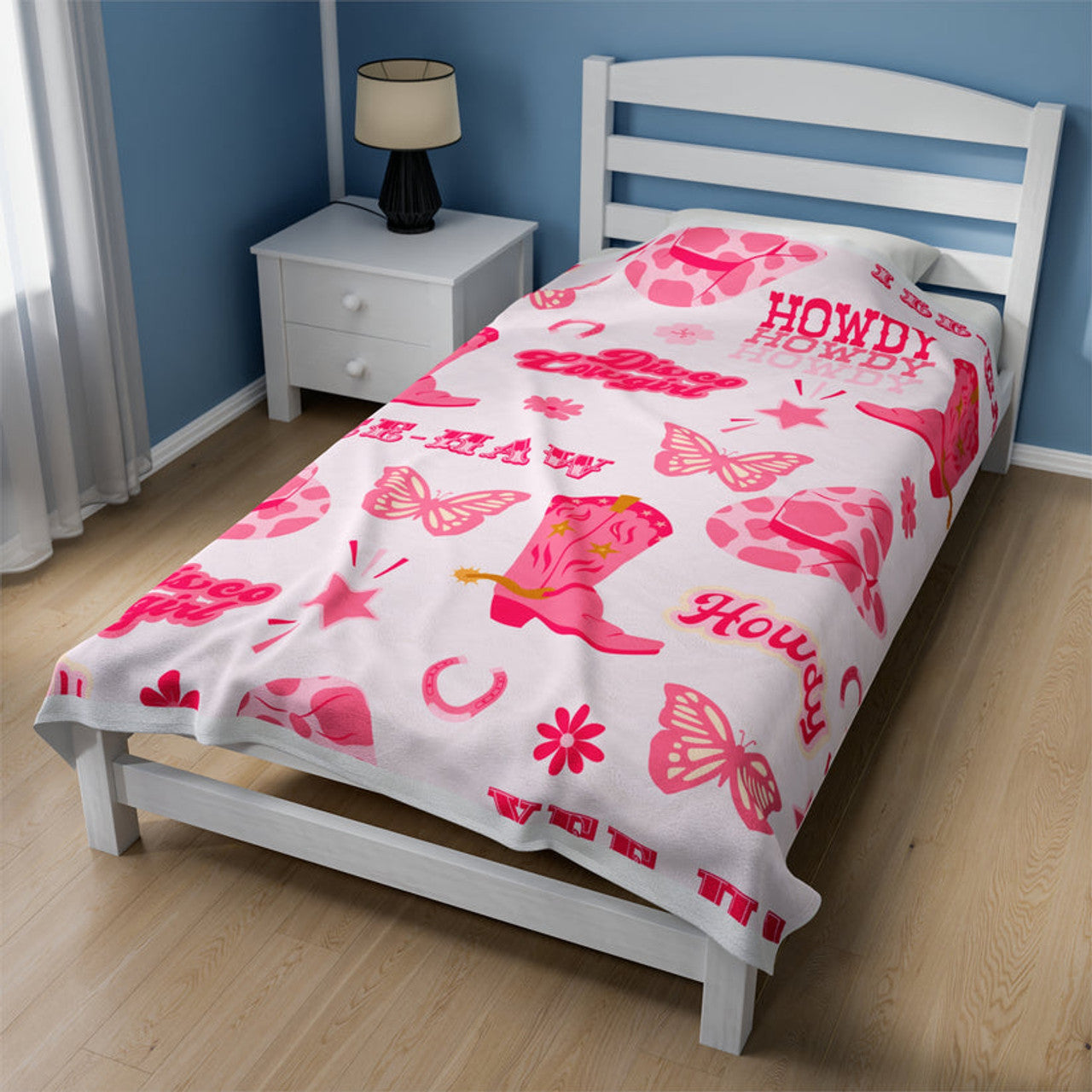FUNSTUFFPRINT Plush Blanket - Yeehaw Howdy Pink Western Design