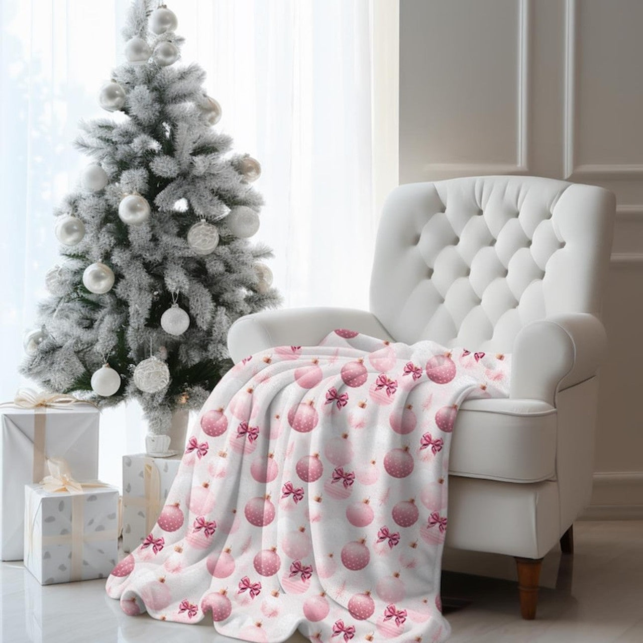 FUNSTUFFPRINT Plush Pink Christmas Velveteen Holiday Blanket | Cozy Whimsical Room Decor | Aesthetic Holiday Throw Blanket for Winter Nights
