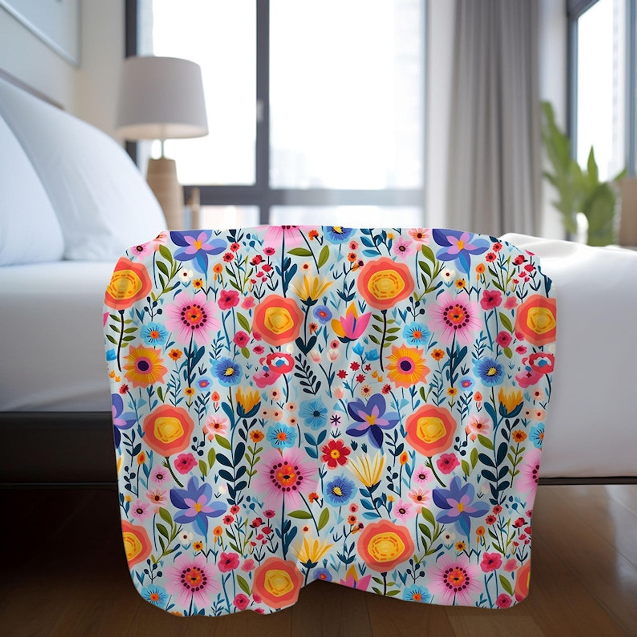 FUNSTUFFPRINT Pressed Flower Throw Blanket, Plush Throw Blanket, Cozy Christmas Gift For Mom, Housewarming Gift For First Home, Dopamine Decor, Fall Gift