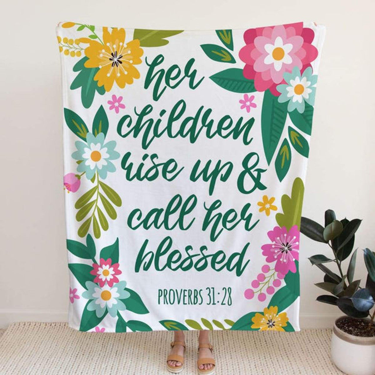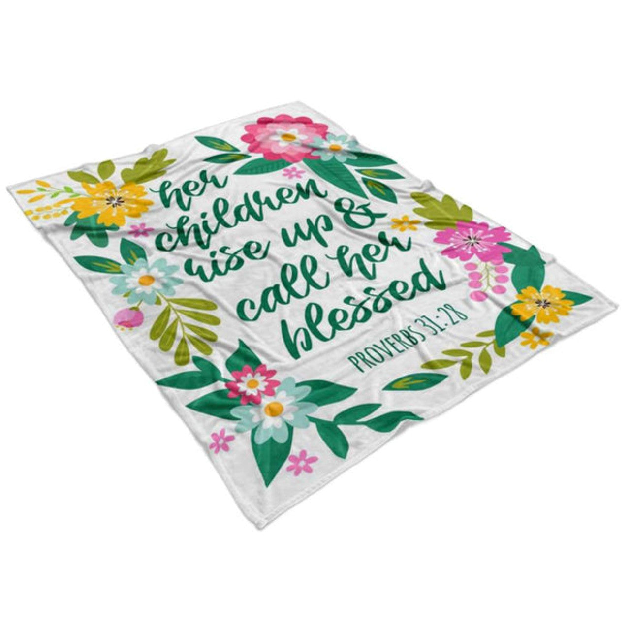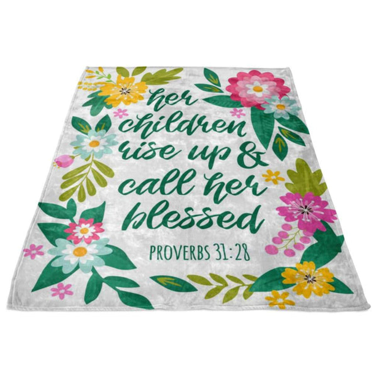 FUNSTUFFPRINT Proverbs 3128 Her Children Arise Up And Call Her Blessed Fleece Blanket - Christian Blanket - Bible Verse Blanket