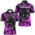 FUNSTUFFPRINT Purple Flame Panther Bowling Polo, For Men Custom Bowling Team League Polo Shirt Size S-5XL