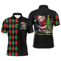 FUNSTUFFPRINT Red and Green argyle pattern black Men golf polo shirt custom Christmas Santa golfer golf outfits , Polo Shirt Size S-5XL
