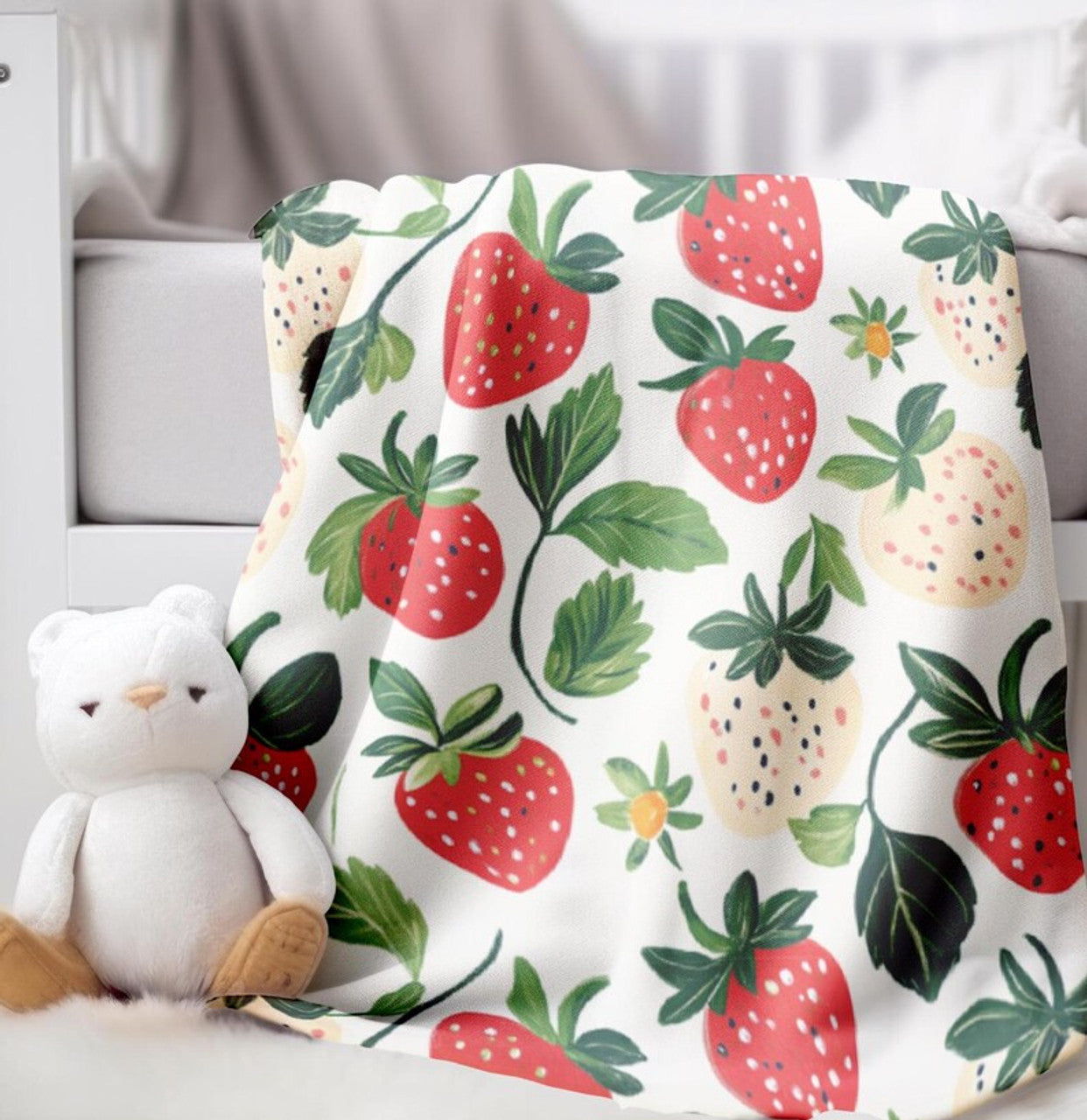 FUNSTUFFPRINT Red Strawberries Baby Blanket, Strawberry Fruit Blanket Swaddles, Baby Shower Gift, Baby Girl Blanket, Sherpa Blanket, Velveteen Blankets