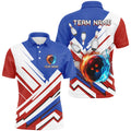 FUNSTUFFPRINT Red, White and Blue Flame Bowling Polo Shirt Size S-5XL