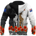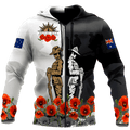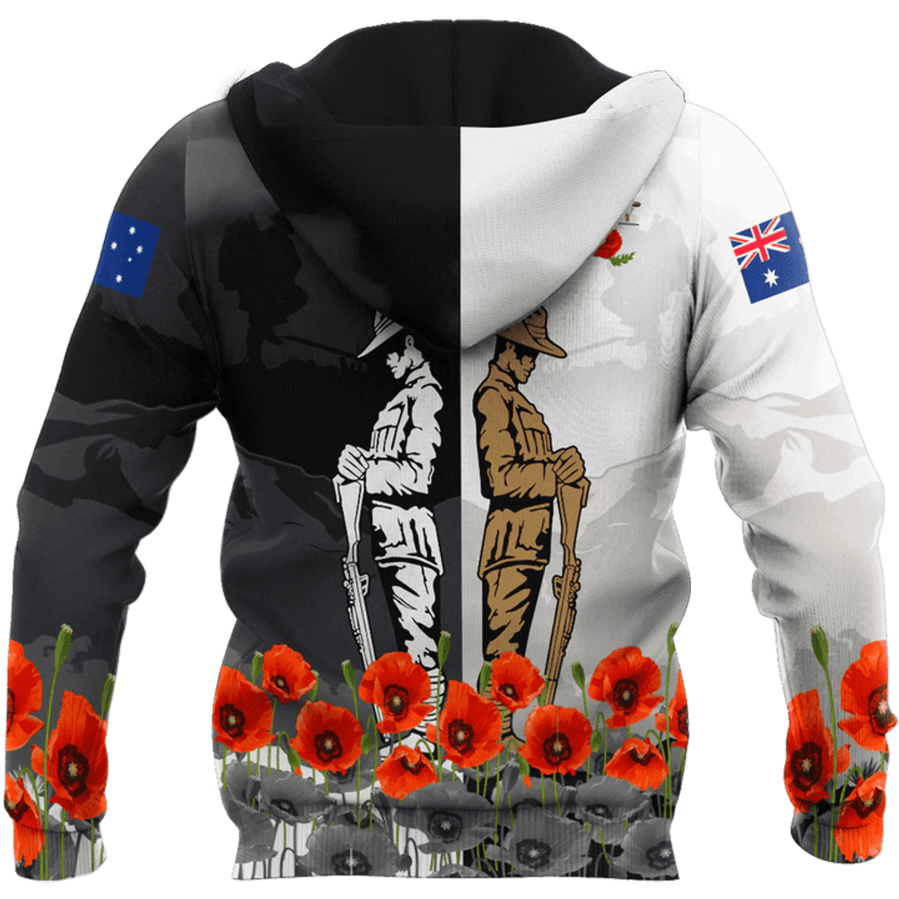 FUNSTUFFPRINT Rememberance Anzac Day Poppy Flower Black White Premium Unisex 3D Hoodie and Zip Hoodie