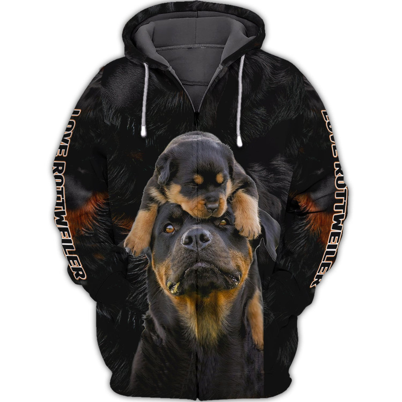FUNSTUFFPRINT Rottweiler Mom, Love Rottweiler 3D Hoodie and Zip Hoodie