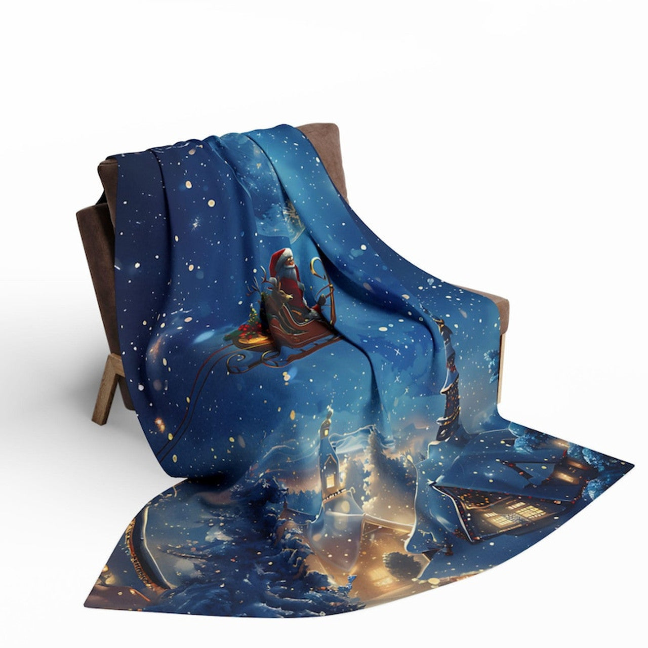 FUNSTUFFPRINT Santa Blanket Santa Arctic Fleece Blanket Christmas Lover Blanket Santa Claus in Sleigh Blanket Christmas Gift for Her