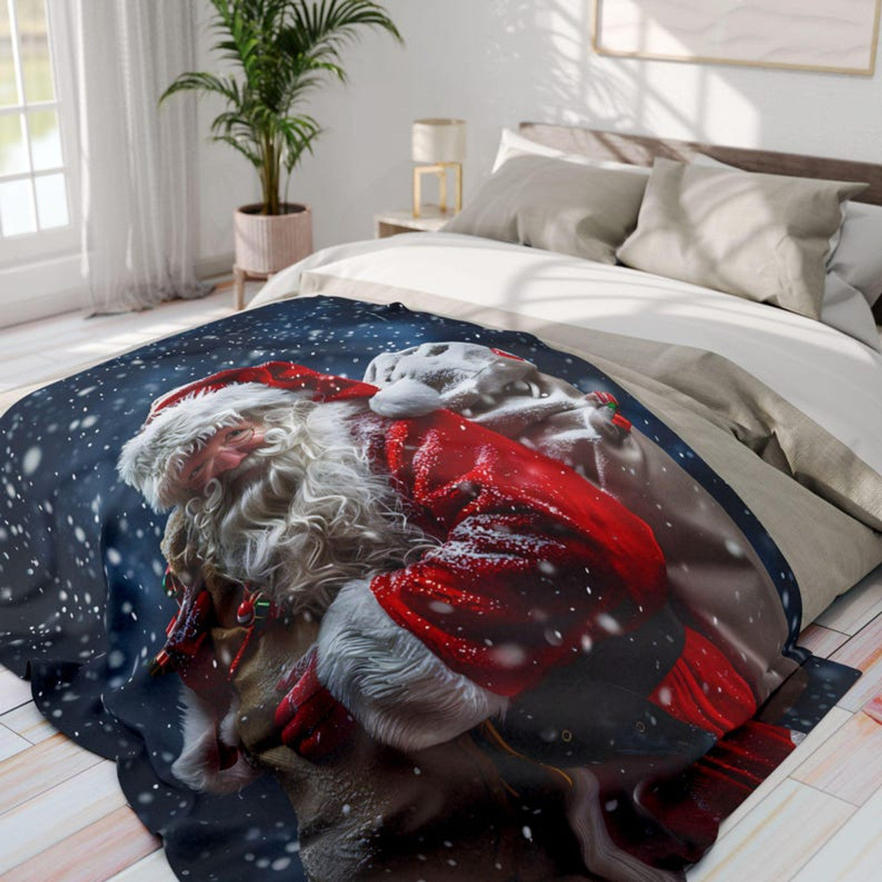 FUNSTUFFPRINT Santa Blanket Santa Claus Arctic Fleece Blanket Christmas Lover Blanket Santa Claus in Sleigh Blanket Christmas Gift for Her