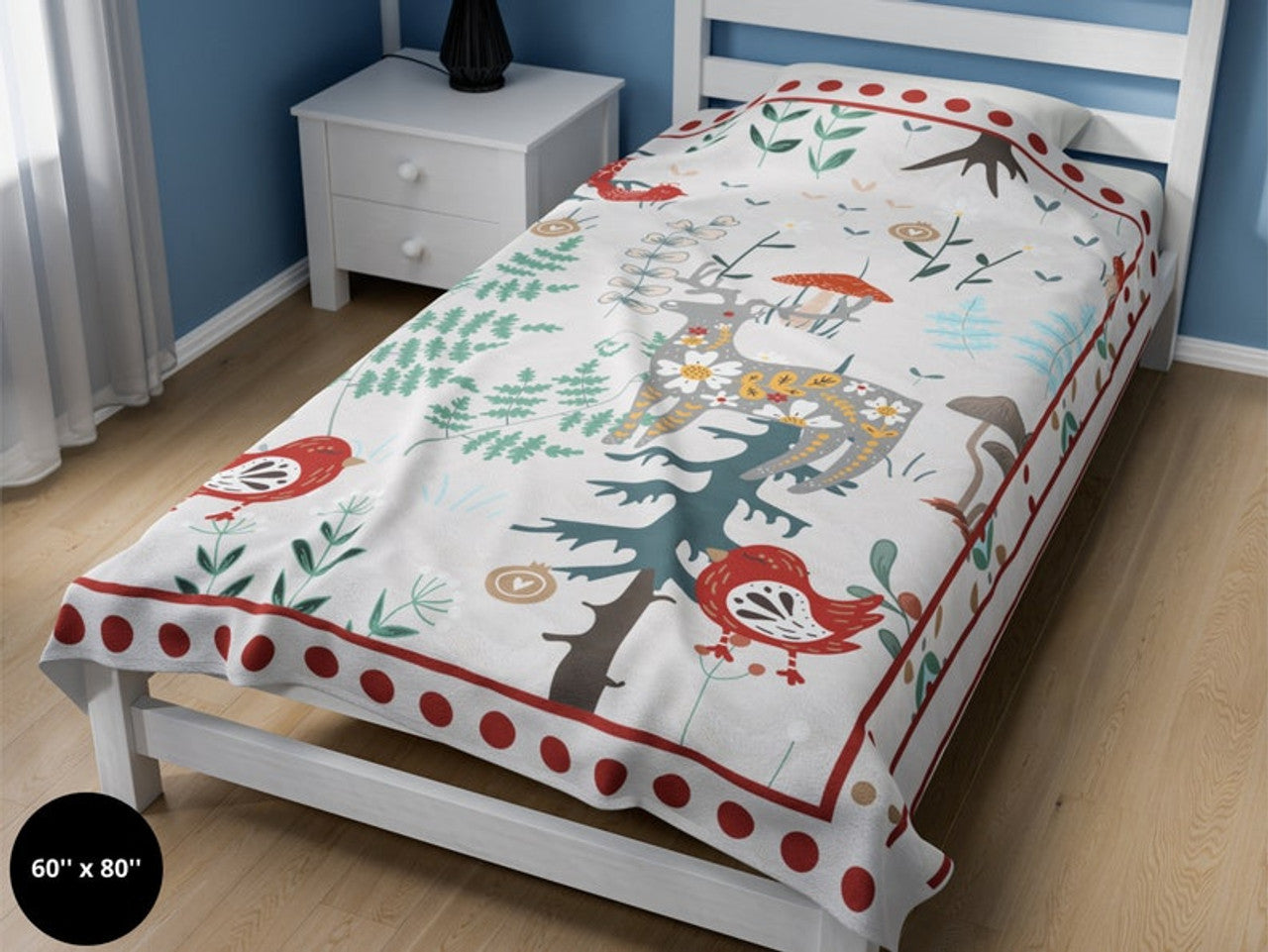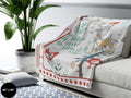FUNSTUFFPRINT Scandinavian Christmas Blanket| Swedish Norwegian Folk Art Throw Blanket| Woodland Animals Blanket| Norwegian Christmas| Nordic Home Decor