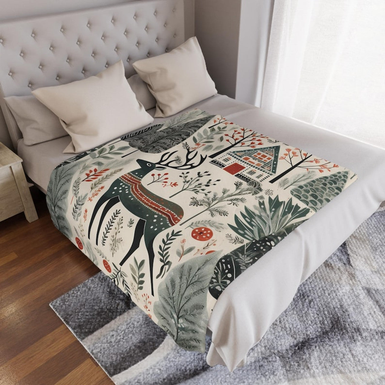 FUNSTUFFPRINT Scandinavian Christmas Minky Blanket, Norwegian Christmas Blanket, Holiday Blanket, Family Holiday, Folk Art Design Blanket, Scandi Xmas