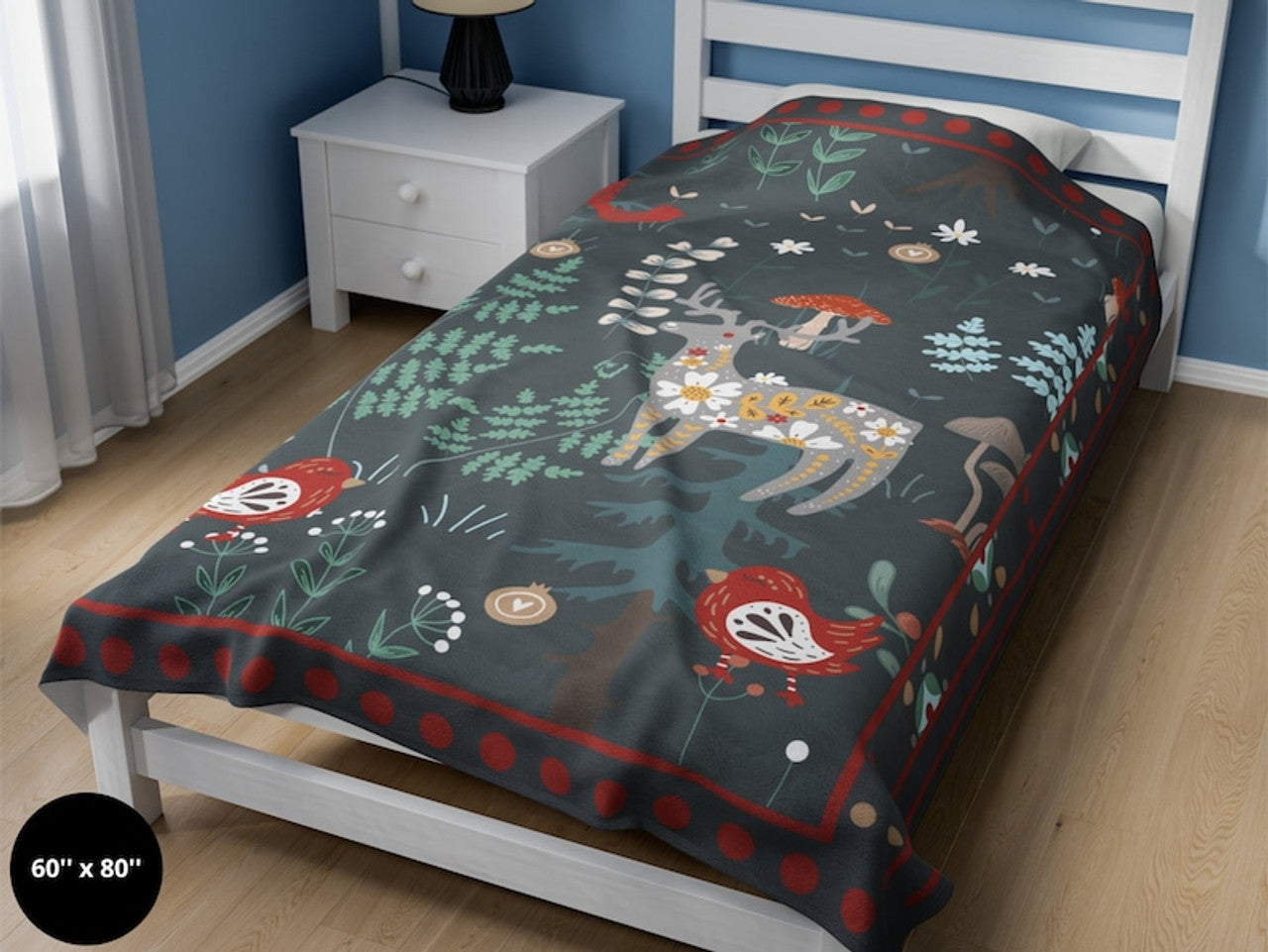FUNSTUFFPRINT Scandinavian Folk Art Throw Blanket| Woodland Animals| Swedish Norwegian Folk Art Blanket |Norwegian Christmas Blanket| Nordic Home Decor