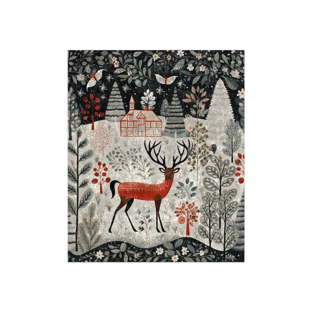 FUNSTUFFPRINT Scandinavian Print Velvet Blanket, Scandi Home Decor, Norwegian Holiday Throw, Christmas Blanket, Folk Art Blanket, Norwegian Blanket