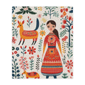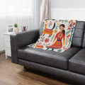 FUNSTUFFPRINT Scandinavian Winter Minky Blanket, Bold Nordic Folk Art Print on a Soft Fleece Blanket, Winter Gifts, Soft Throw, Vibrant Colors, Bold Print
