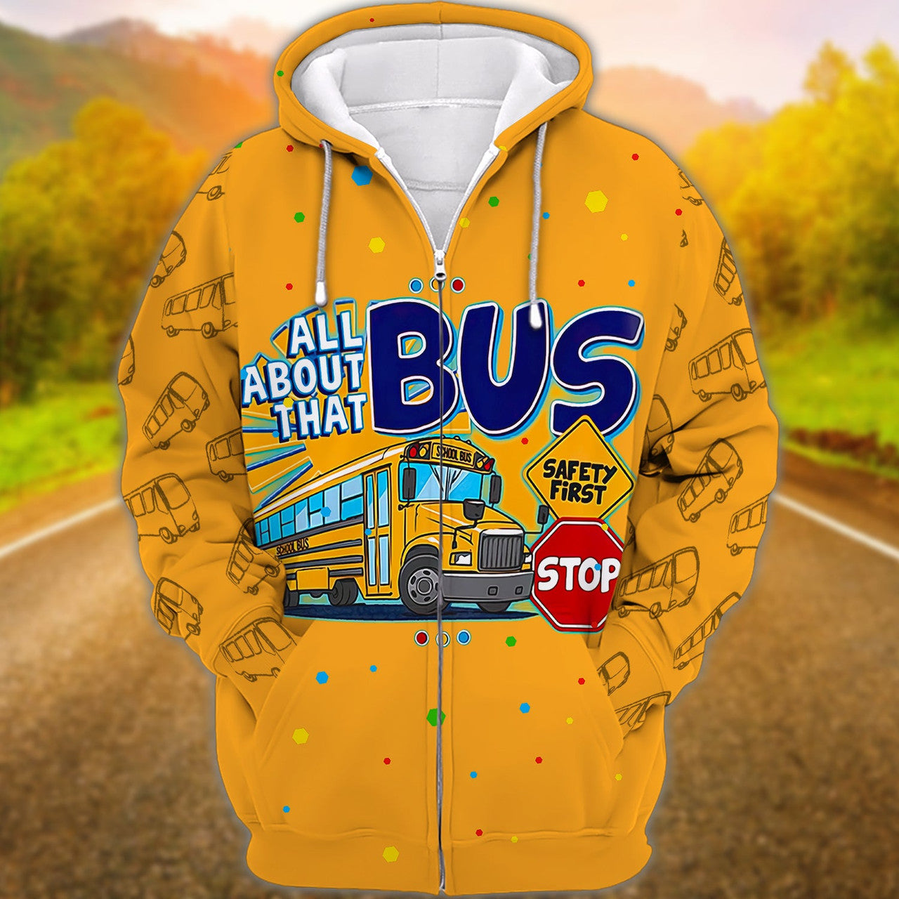 FUNSTUFFPRINT School Bus- All About That Bus Safety First Stop 3D Hoodie and Zip Hoodie