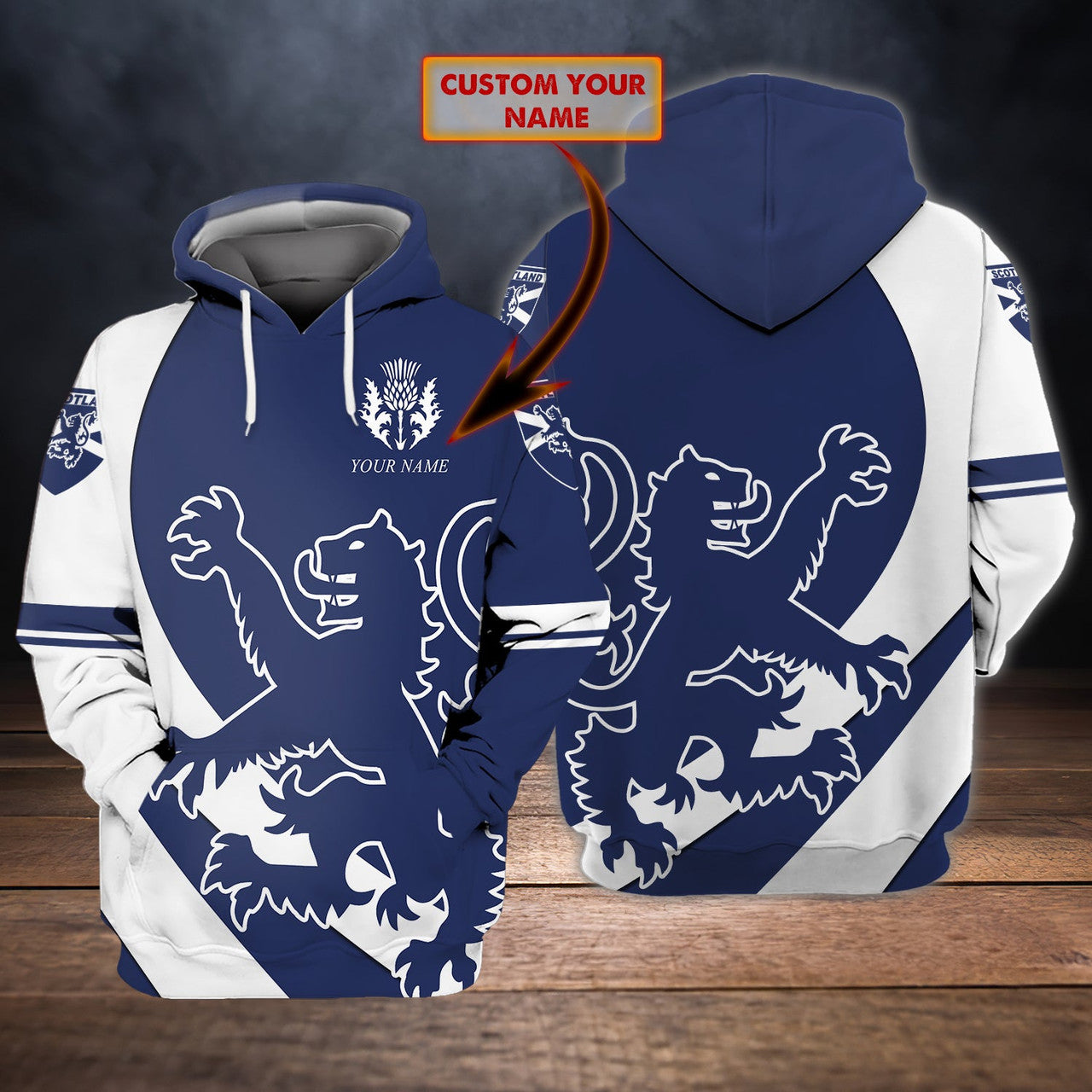FUNSTUFFPRINT Scotland Royal Lion and Thistle Pullover- Personalized Name 3D Hoodie and Zip Hoodie