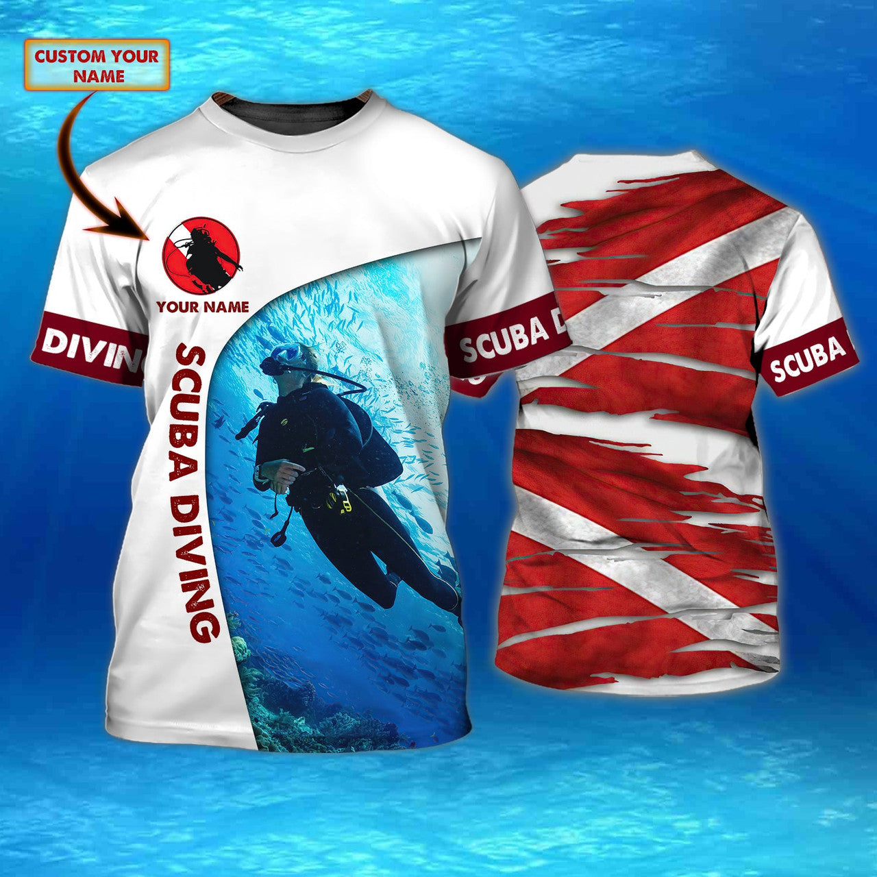 FUNSTUFFPRINT Scuba Diving 1 - Personalized Name 3D T-Shirt